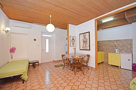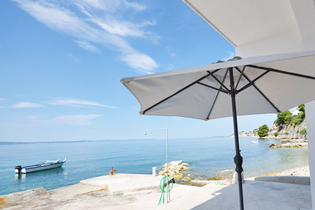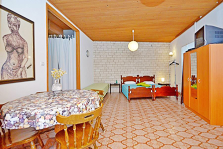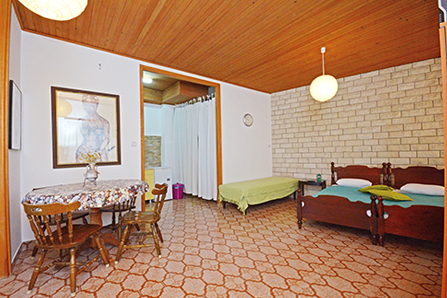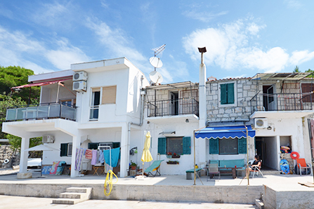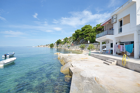Iz apartmana Gajine, površine 45m2, izlazite direktno na plažu (kamena i šljunkovita) prilagođena za djecu.